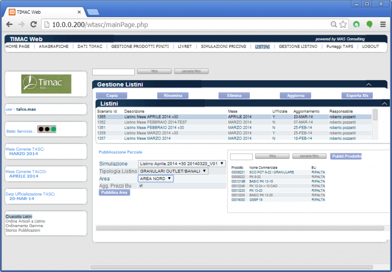 Ultimi Contenuti InseritiAliante Web App...SEMDecision Support System...PRATA New Taps...QuestOStrumento di raccolta dati On-Line http://b.mas...ETZETZ ETRM...